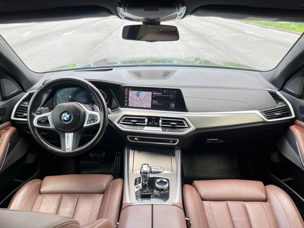 Chiếc BMW X5 xDrive40i M Sport 2022 phiên bản M Sport mang diện mạo “bụi bặm” và sắc nét, khoác lên mình màu đen lịch lãm kết hợp nội thất da nâu ấm áp, tạo nên vẻ cuốn hút mạnh mẽ ngay từ cái nhìn đầu tiên.